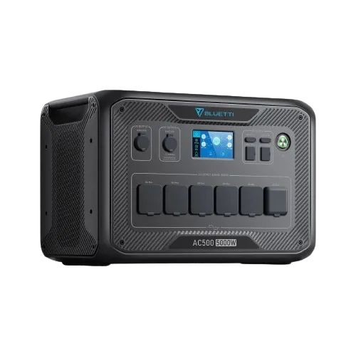 The BLUETTI AC500 is a modular inverter unit that requires external battery packs (like B300 or B300S) to store energy. It is designed for high-demand and scalable power needs, making it ideal for home backup, off-grid living, and large solar setups. It delivers clean, pure sine wave AC power and supports UPS mode to provide uninterrupted power to sensitive electronics. The AC500 can be monitored and controlled via its touchscreen or smartphone app.