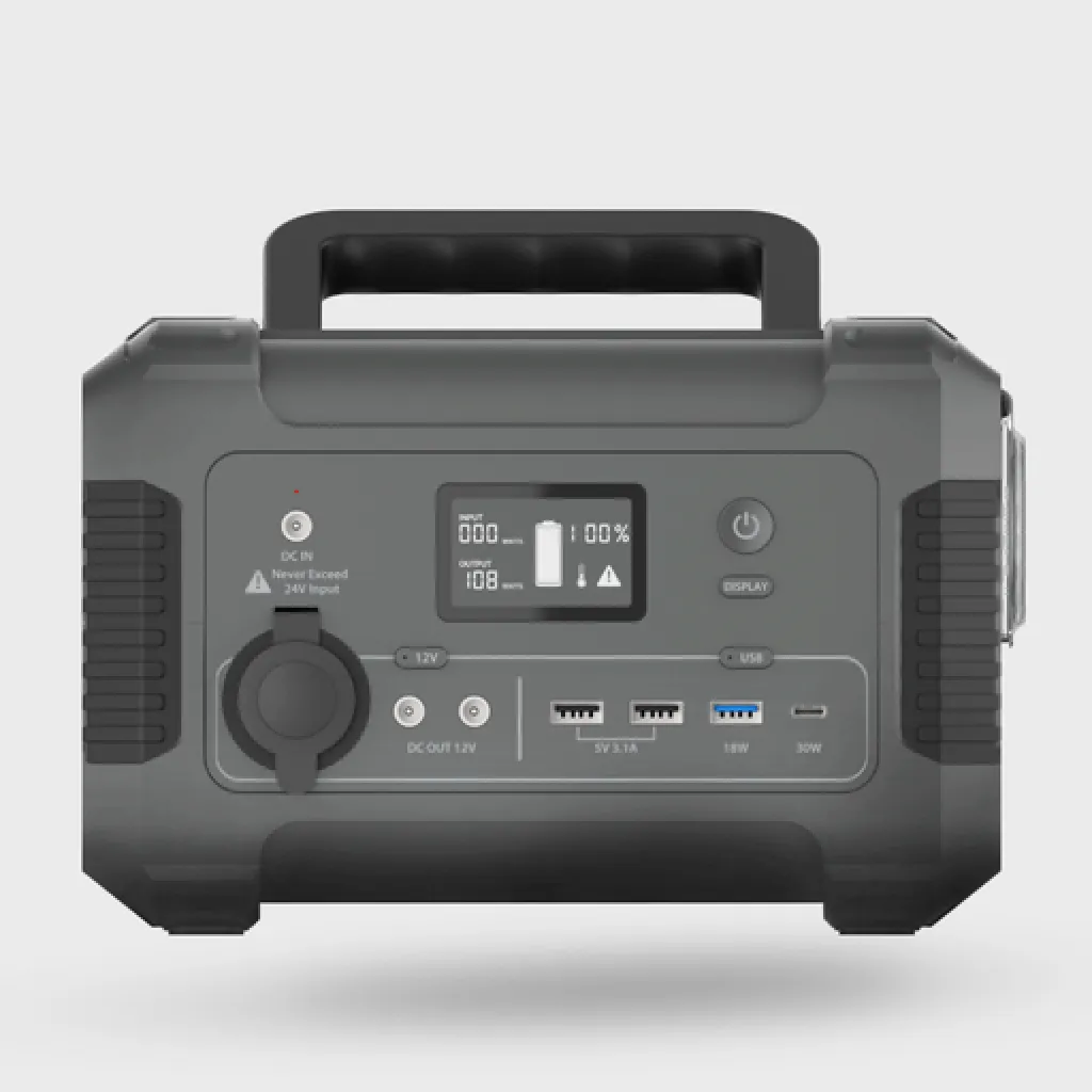 It includes multiple ports to support a variety of devices: a 60 W USB‑C Power Delivery output, an 18 W USB‑A quick charge port, a 12 V / 10 A car port, AC outlets, and a solar‑recharge input. The system also has a smart battery management system to protect against overload and overheating, plus an LCD panel that displays the current charge level.